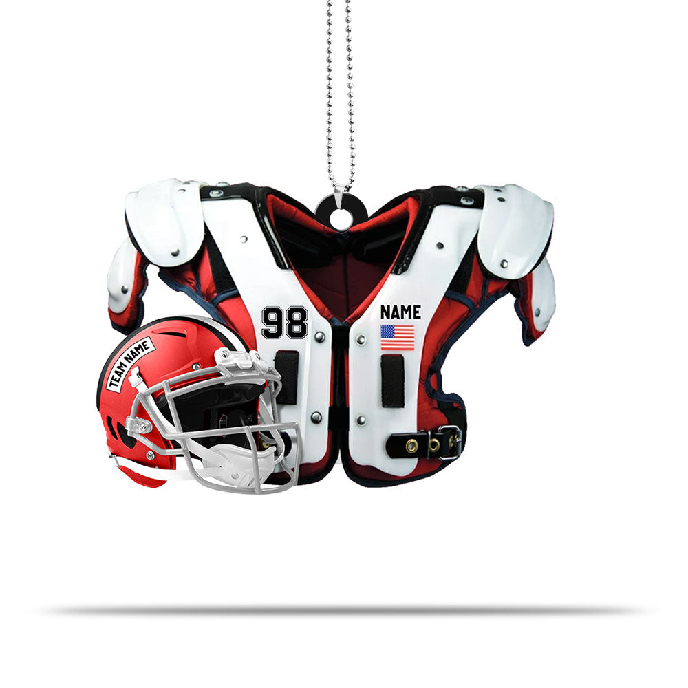American Football Shoulder Pads, Helmet Personalized Acrylic Car Ornament 2 Sides Print, Made By Acrylic And The 2 Sides Are The Same