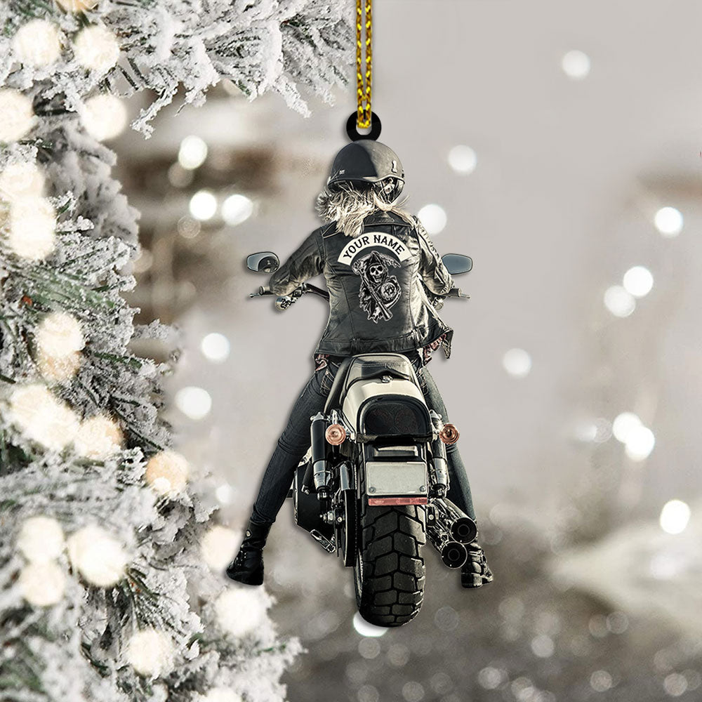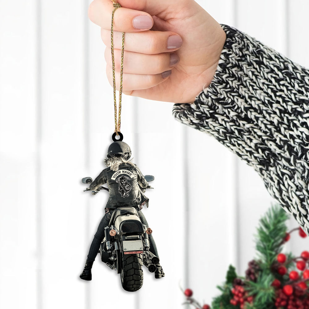 Lady Biker Back View Personalized Shape Acrylic Ornament 2 Sides Print, Made By Acrylic And The 2 Sides Are The Same
