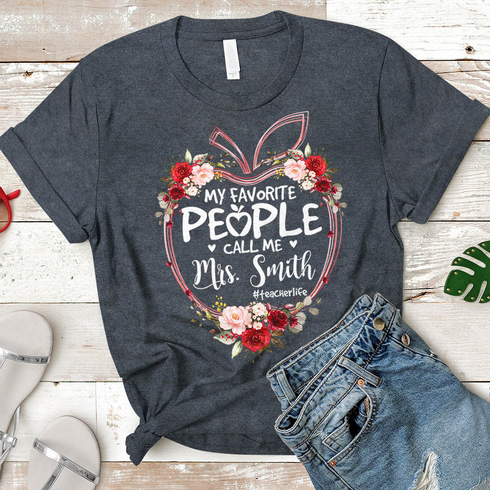 My Favorite People Call Me Teacher Last Name Apple Floral Shirt, Teacher Life Shirt Vr2 Personalized Teacher Last Name & Hashtag H2511