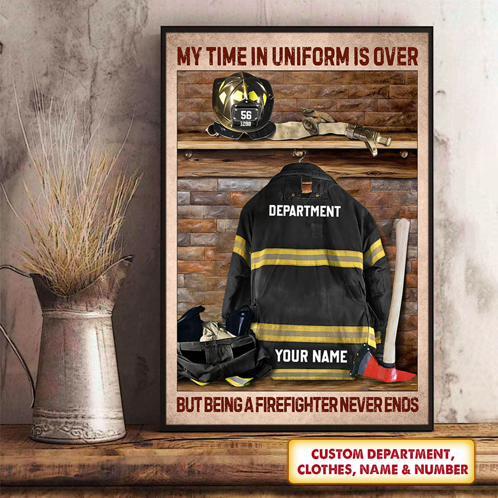 My Time In Uniform Is Over But Being A Firefighter Never Ends Personalized Canvas/ Poster