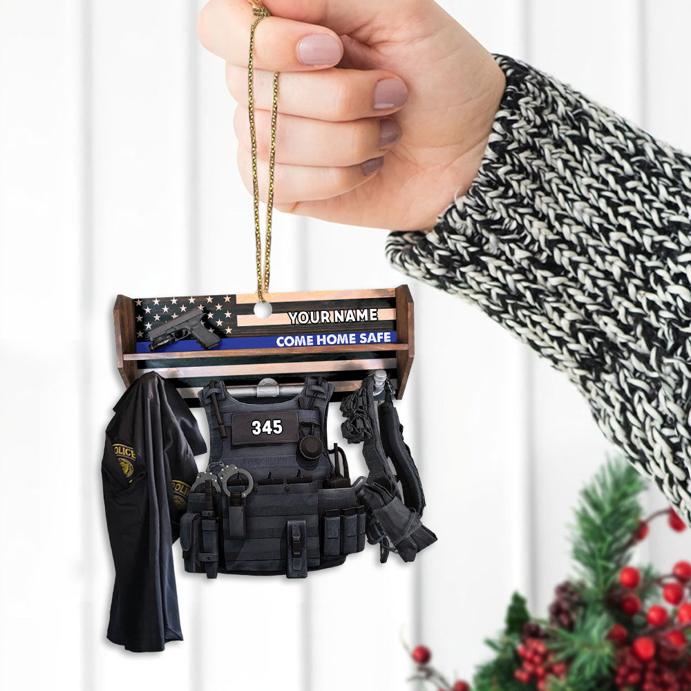 Police Storage Shelf Come Home Safe Personalized Acrylic Ornament, Made By Acrylic And The 2 Sides Are The Same